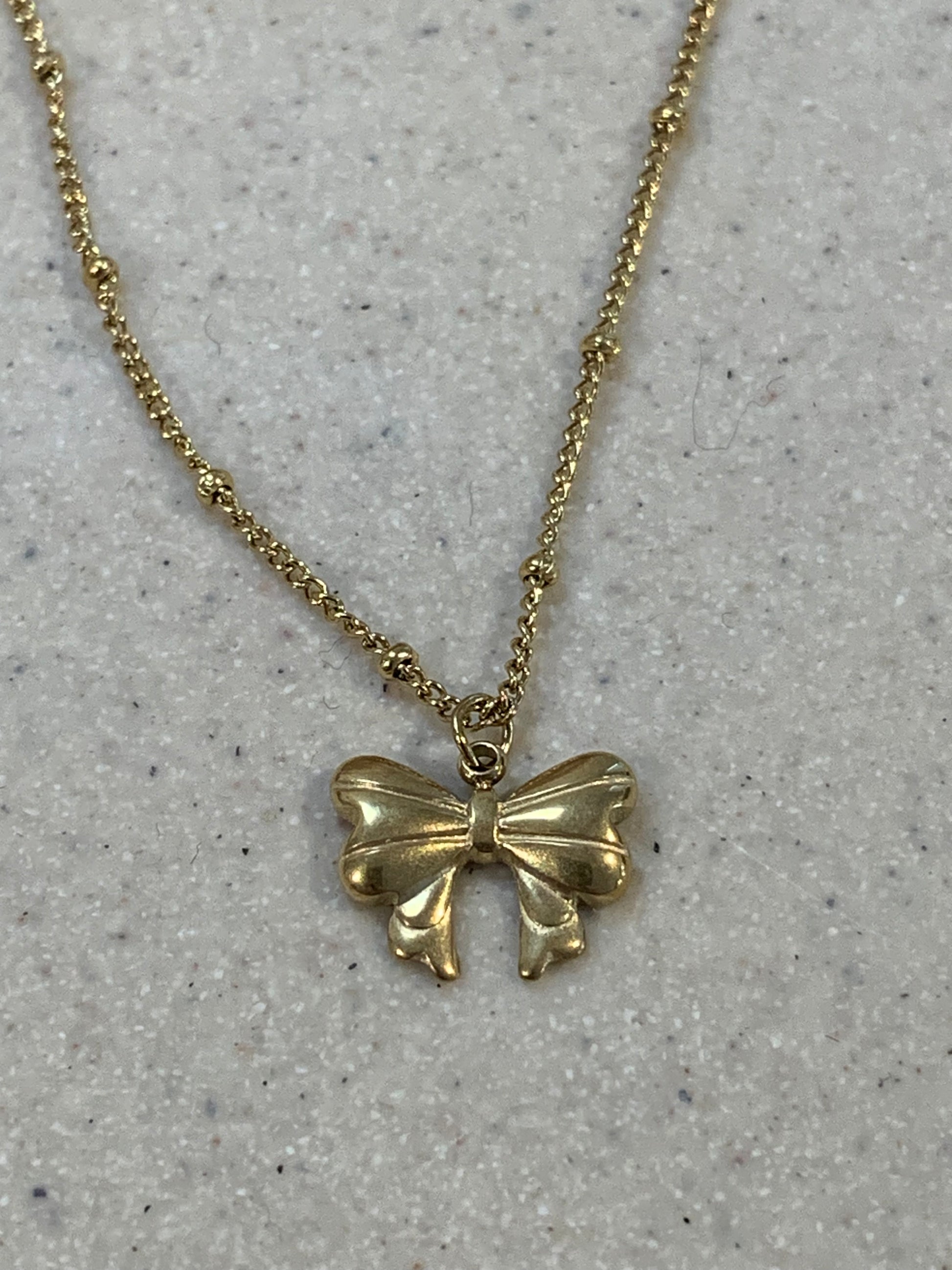 Introducing our Bow Necklace, featuring a bow pendant on a fine satellite chain.
