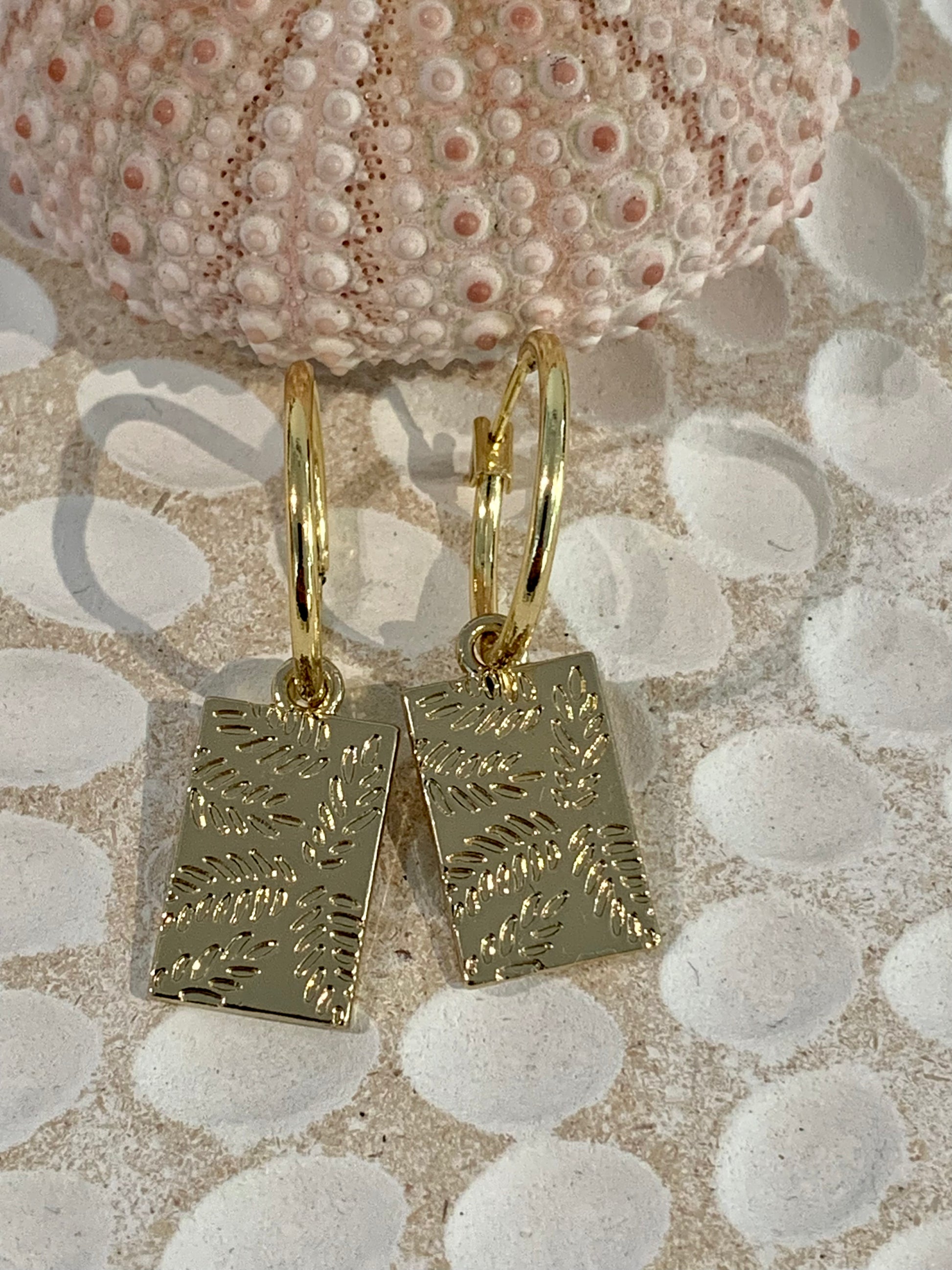 14k gold vermeil hoops with a stunning Leaf stamped charm