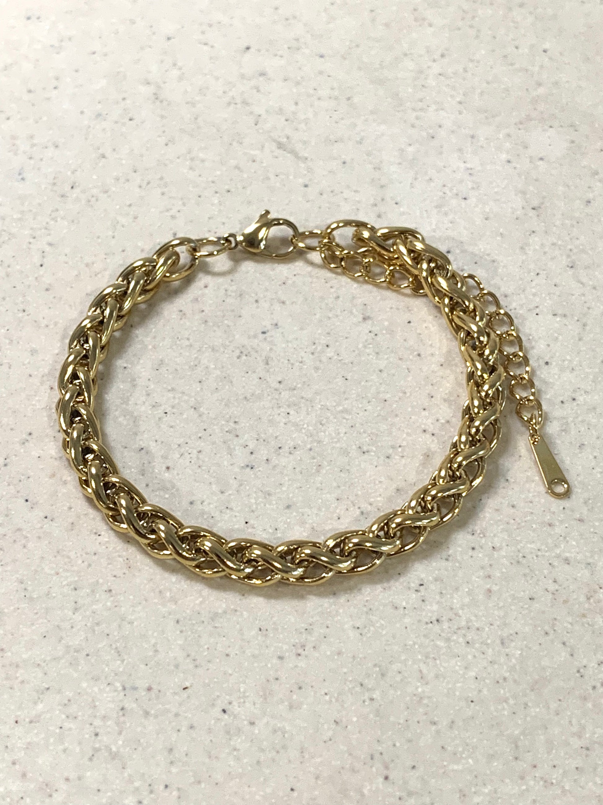 Introducing our Paris Gold Bracelet a beautiful entwined gold bracelet like a french braid. She feels as luxurious as she looks and will instantly add the glam to any look.