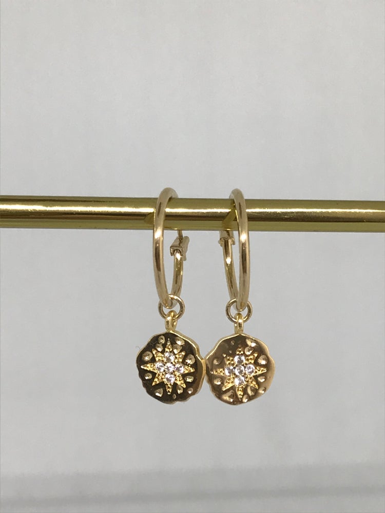 Beautiful Hoop earrings featuring a Gold dangle studded with diamanté’s