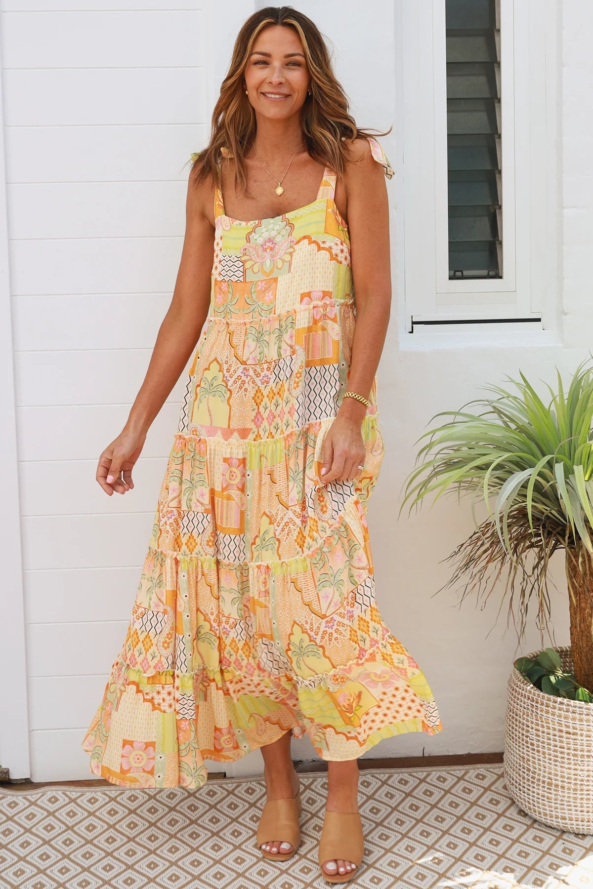 The Xena Slip Maxi Dress will have you running away for a Moroccan holiday! This super flattering style is loose through the body with adjustable bra friendly wide straps. She has a tiered maxi length skirt and pockets. The Xena slip maxi will take you through Summer effortlessly.